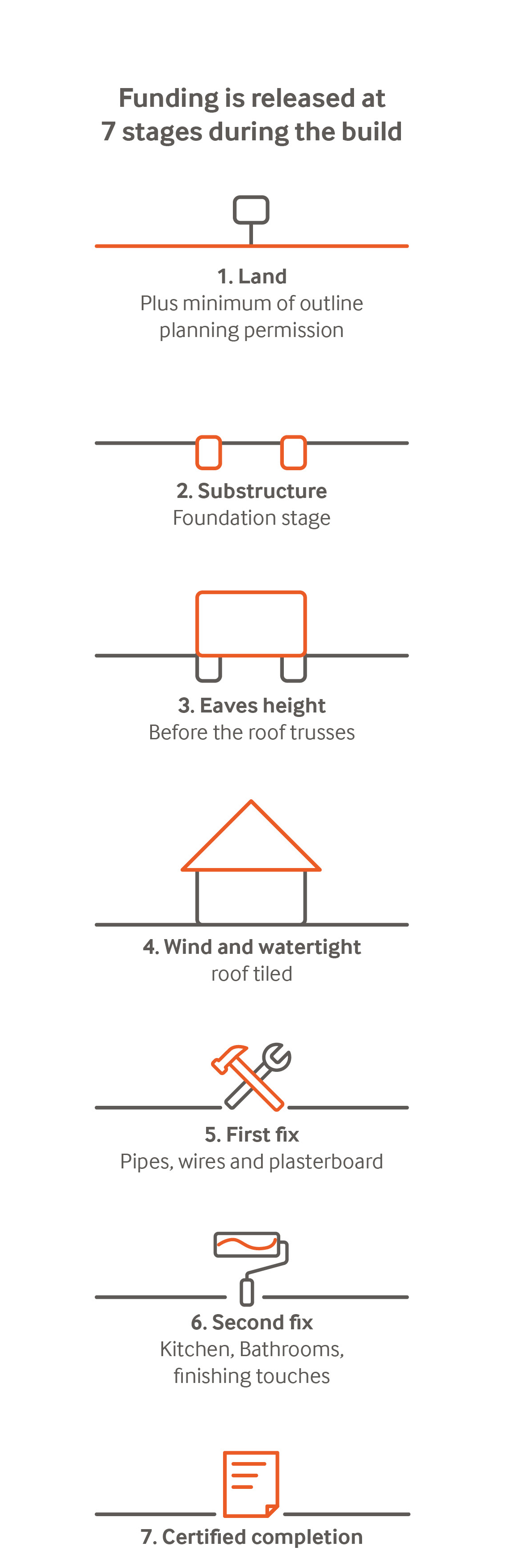 Funds are released at each stage as the build of the property progresses with the amount released at each stage differing as they can require different amounts of money. The actual amount for each stage depends on the project itself and will differ for each property. When applying for a self-build mortgage, borrowers will have to provide detailed plans and costings to show they have a realistic budget and that the project is actually feasible.